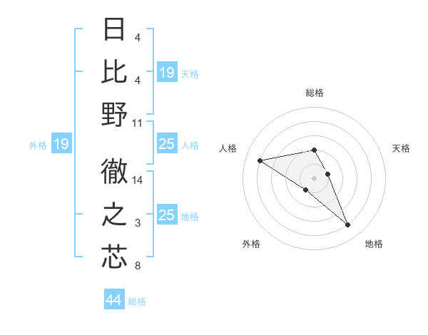 日比野 徹之芯さんの総格は44画の2点!