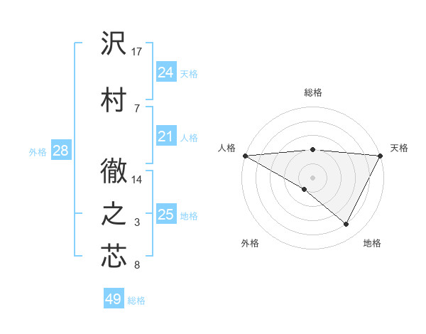 沢村 徹之芯さんを姓名の画数から五運を鑑定