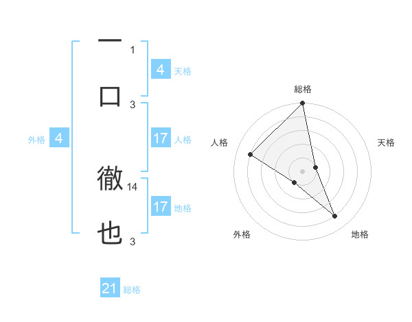 一口 徹也さんの総格は21画の5点!