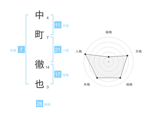 中町 徹也さんの総格は28画の1点!