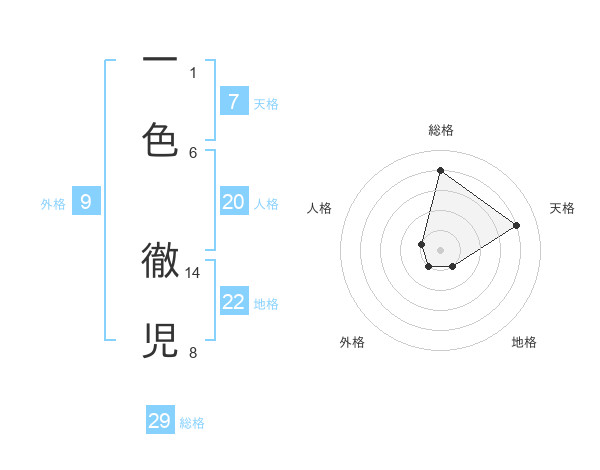 一色 徹児さんの総格は29画の4点!