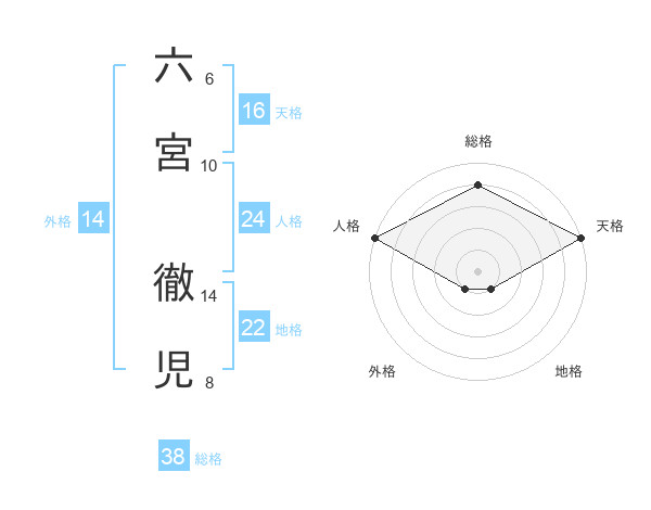 六宮 徹児さんを姓名の画数から五運を鑑定
