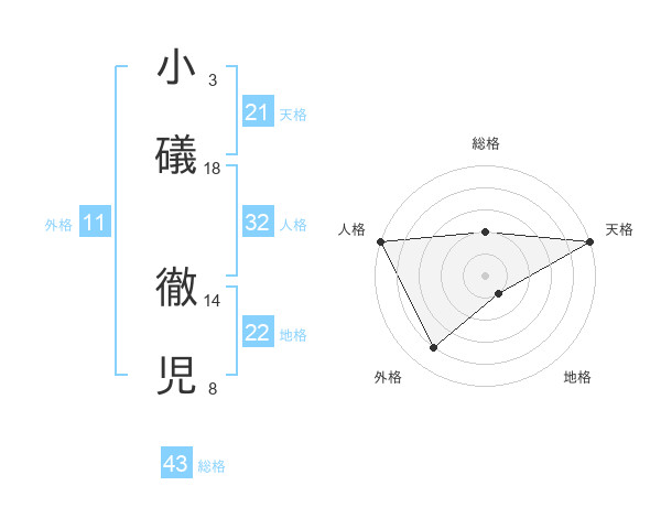 小礒 徹児さんの天格は21画の5点!
