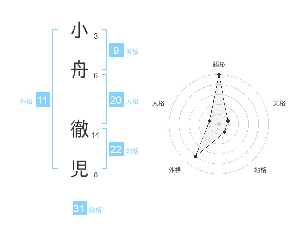 小舟 徹児さんの総格は31画の5点!