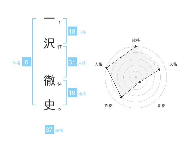 一沢 徹史さんを姓名の画数から五運を鑑定
