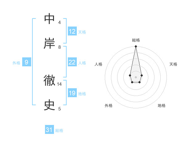 中岸 徹史さんを姓名の画数から五運を鑑定