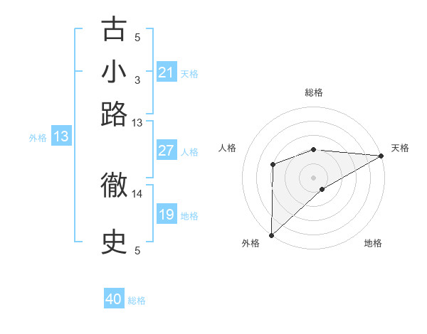 古小路 徹史さんの外格は13画の5点!