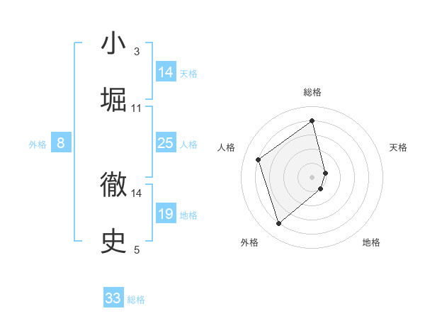 小堀 徹史さんの総格は33画の4点!