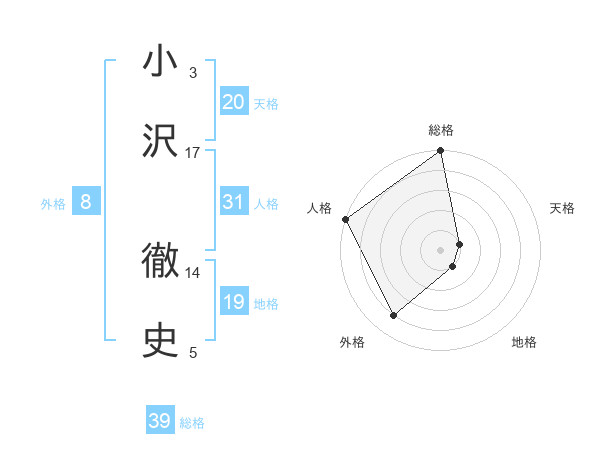 小沢 徹史さんを姓名の画数から五運を鑑定
