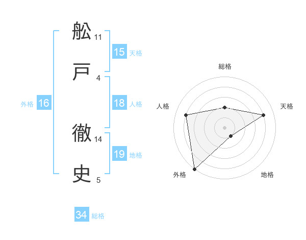 舩戸 徹史さんを姓名の画数から五運を鑑定
