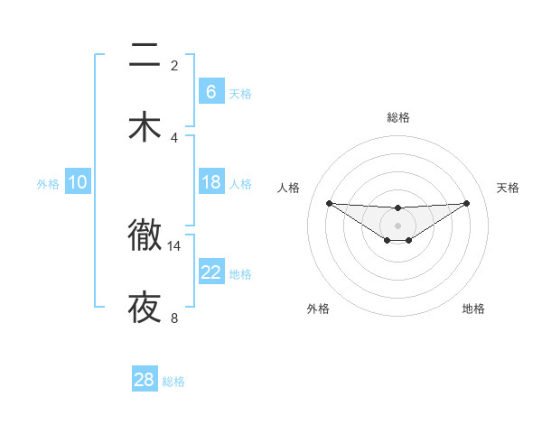 二木 徹夜さんを姓名の画数から五運を鑑定