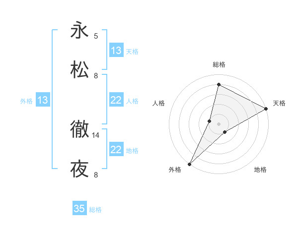 永松 徹夜さんの外格は13画の5点!