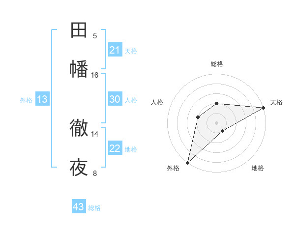 田幡 徹夜さんの外格は13画の5点!