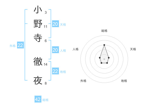 小野寺 徹夜さんの外格は22画の1点!