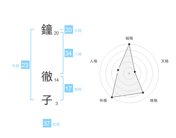 鐘 徹子さんの総格は37画の5点!