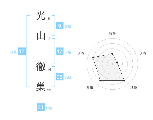 光山 徹巣さんを姓名の画数から五運を鑑定