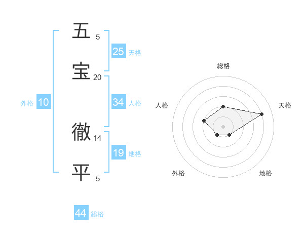 五宝 徹平さんを姓名の画数から五運を鑑定