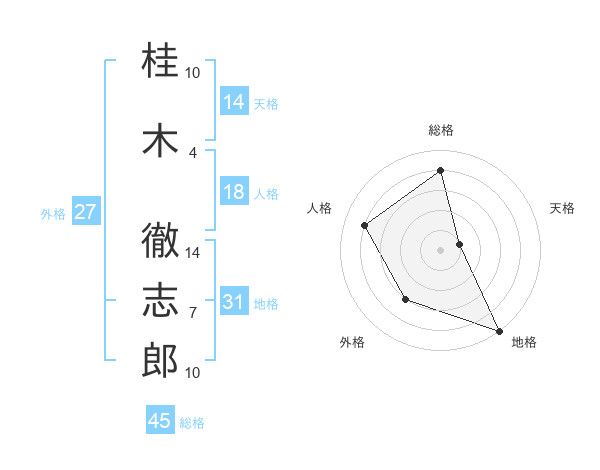 桂木 徹志郎さんを姓名の画数から五運を鑑定