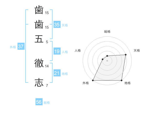 歯歯五 徹志さんの外格は37画の5点!