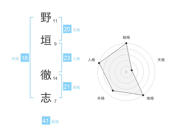 野垣 徹志さんを姓名の画数から五運を鑑定