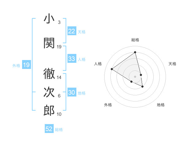 小関 徹次郎さんを姓名の画数から五運を鑑定