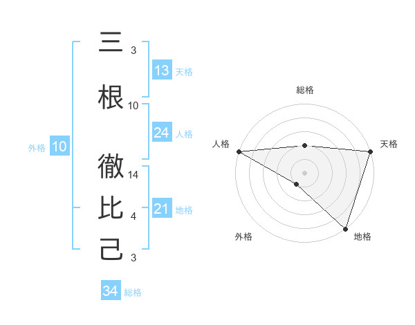 三根 徹比己さんを姓名の画数から五運を鑑定
