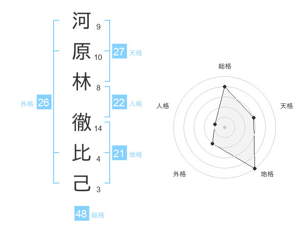 河原林 徹比己さんを姓名の画数から五運を鑑定