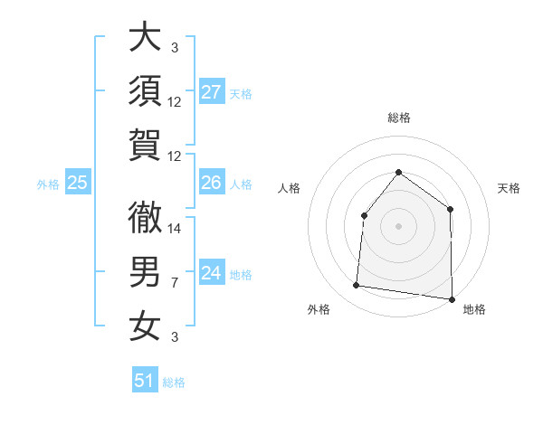 大須賀 徹男女さんを姓名の画数から五運を鑑定