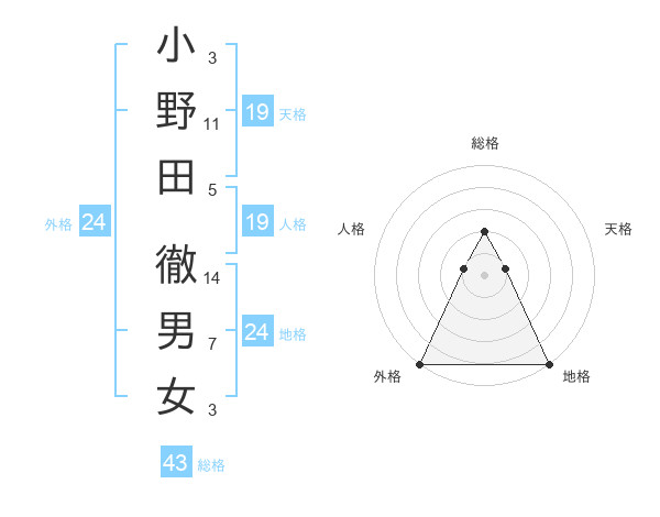 小野田 徹男女さんを姓名の画数から五運を鑑定