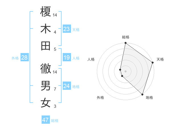 榎木田 徹男女さんの総格は47画の5点!