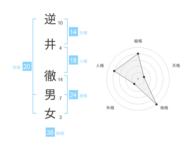 逆井 徹男女さんの総格は38画の4点!