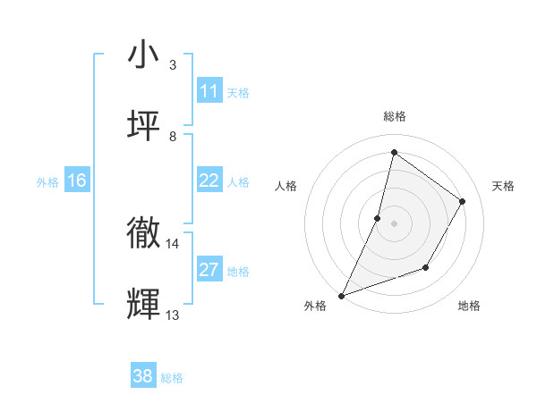 小坪 徹輝さんを姓名の画数から五運を鑑定