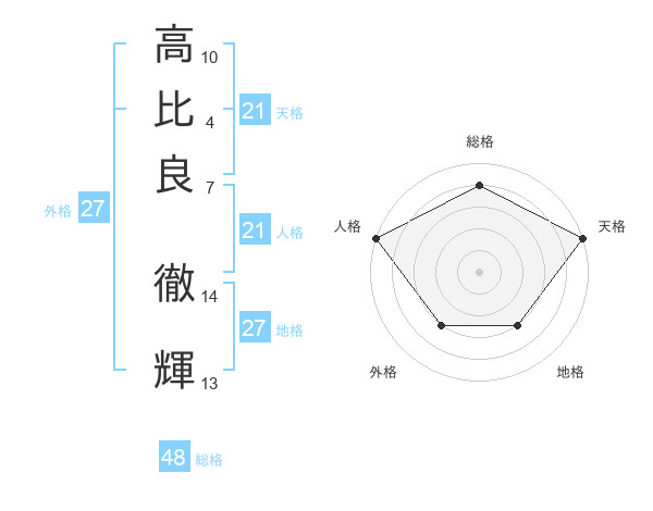 高比良 徹輝さんの天格は21画の5点!