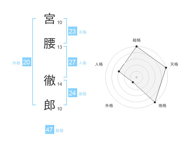 宮腰 徹郎さんを姓名の画数から五運を鑑定