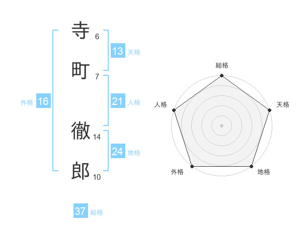 寺町 徹郎さんの総格は37画の5点!