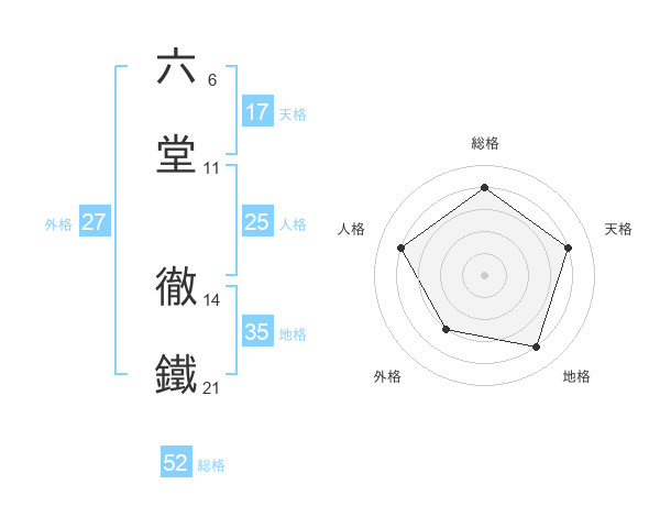 六堂 徹鐵さんを姓名の画数から五運を鑑定
