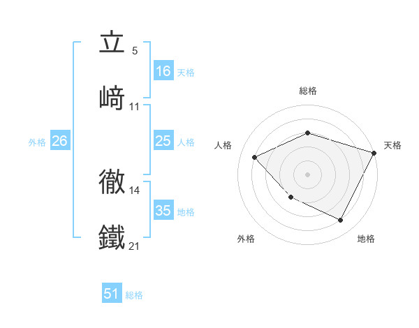 立﨑 徹鐵さんを姓名の画数から五運を鑑定