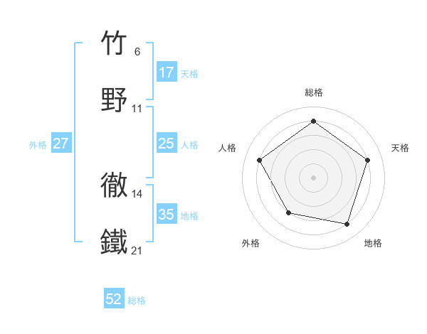 竹野 徹鐵さんを姓名の画数から五運を鑑定