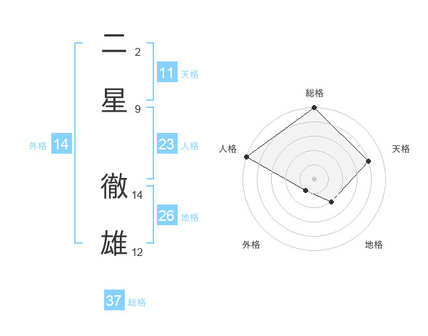 二星 徹雄さんを姓名の画数から五運を鑑定