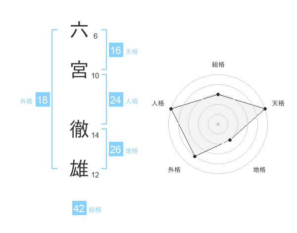六宮 徹雄さんを姓名の画数から五運を鑑定