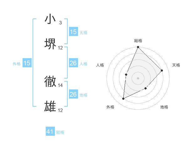 小堺 徹雄さんの総格は41画の5点!