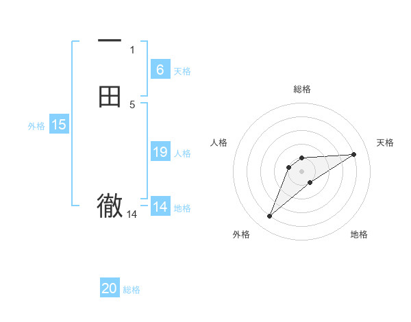 一田 徹さんの総格は20画の1点!