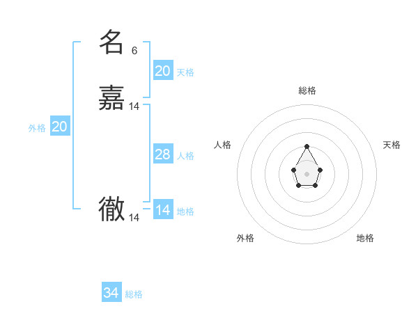 名嘉 徹さんの天格は20画の1点!