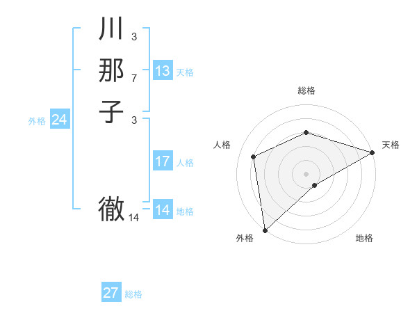 川那子 徹さんの総格は27画の3点!