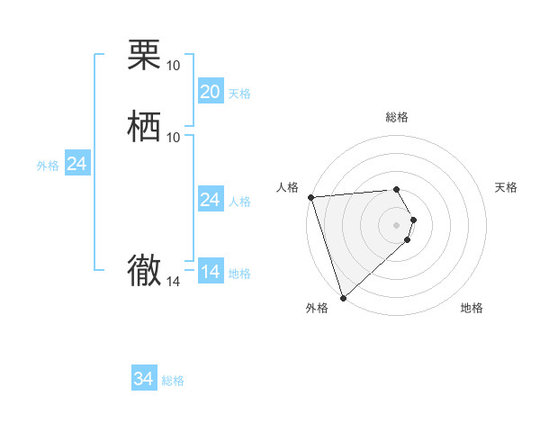 栗栖 徹さんの総格は34画の2点!