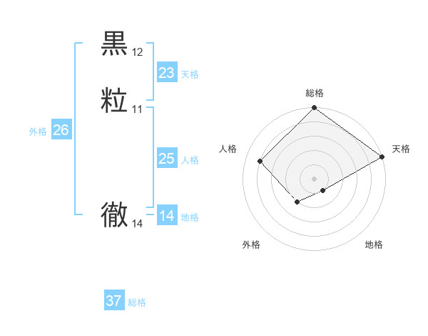 黒粒 徹さんを姓名の画数から五運を鑑定
