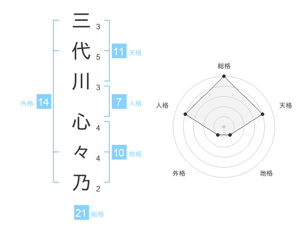 三代川 心々乃さんの総格は21画の5点