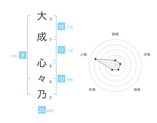 大成 心々乃さんを姓名の画数から五運を鑑定