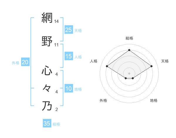 網野 心々乃さんを姓名の画数から五運を鑑定