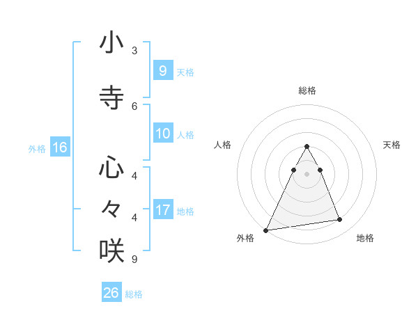 小寺 心々咲さんの外格は16画の5点!